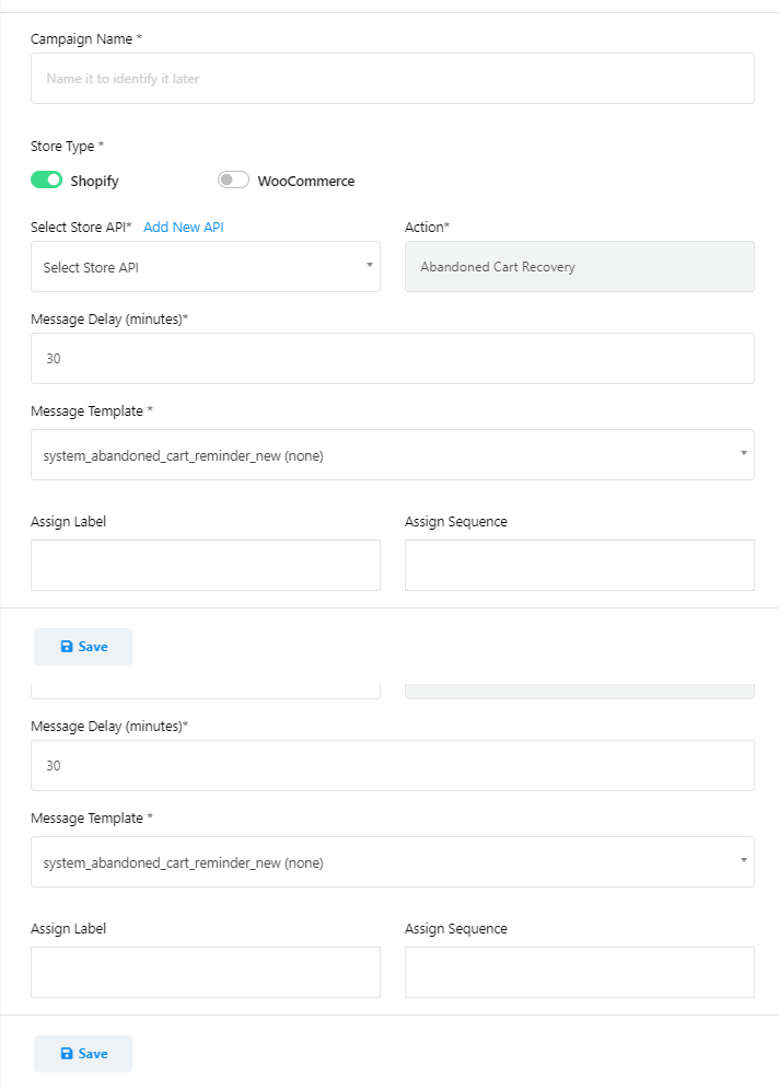 Note: If you didn’t integrate Shopify or Woo-Commerce then you can integrate them from Add `New API`.